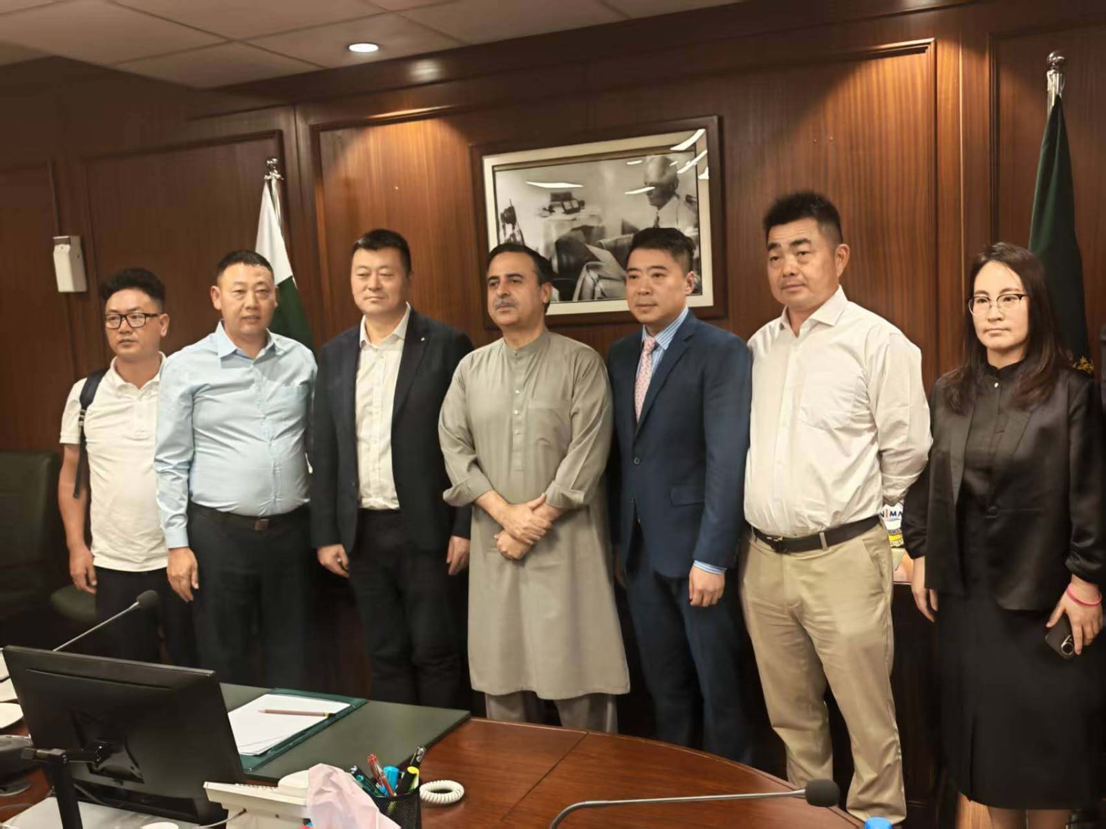 The Chinese delegation included Mr. Yi Jiang, Director of the All-China Federation of Industry and Commerce (ACFIC), Mr. David Chu, Chief Executive Officer of Precise Development (HK) Limited, China, and Ms. He He Amanda, Director of Precise Development (HK) Limited, China. The delegation also included representatives from various Chinese logistics companies and associations including Yunchuan Cross-Border logistics Company, Aviation Industry Association, Sanlian International Corporation, Super Era International Company and Xinfeng Iron Transport Company. The meeting was facilitated and arranged by Mr. Khalid Taimur Akram, Director (Eurasian Region) of Precise Development (HK) Limited, China, who is currently hosting B2B basis Chinese Investments in Pakistan.