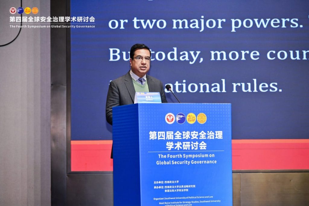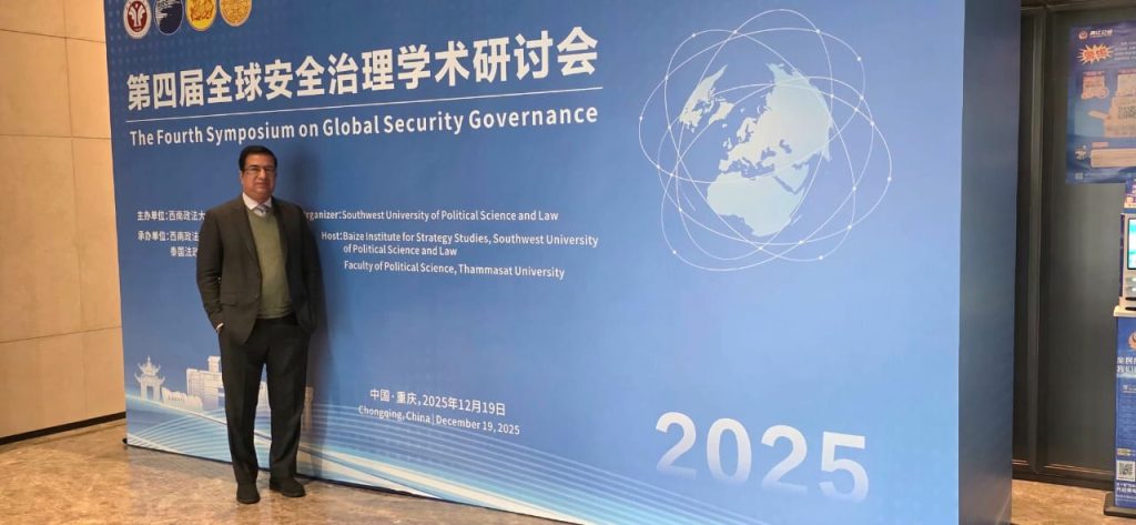 On 19th December 2025, Mr. Khalid Taimur Akram participated as a distinguished speaker at the 4th Academic Symposium on “Global Security Governance,” jointly organized by the Baize Institute of Strategic Studies at Southwest University of Political Science and Law, Chongqing, China, and the Faculty of Political Science, Thammasat University, Bangkok, Thailand held at Chongqing, China. About 80 Scholars/ Experts from 27 countries participated in the event.