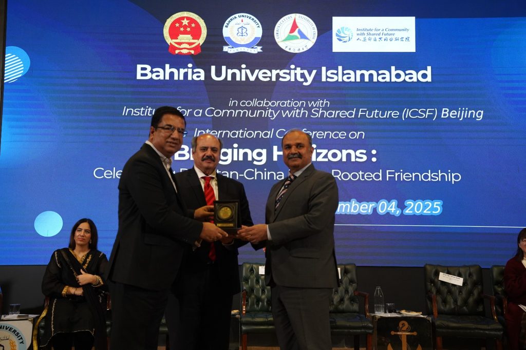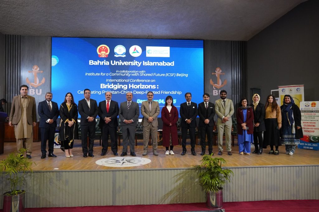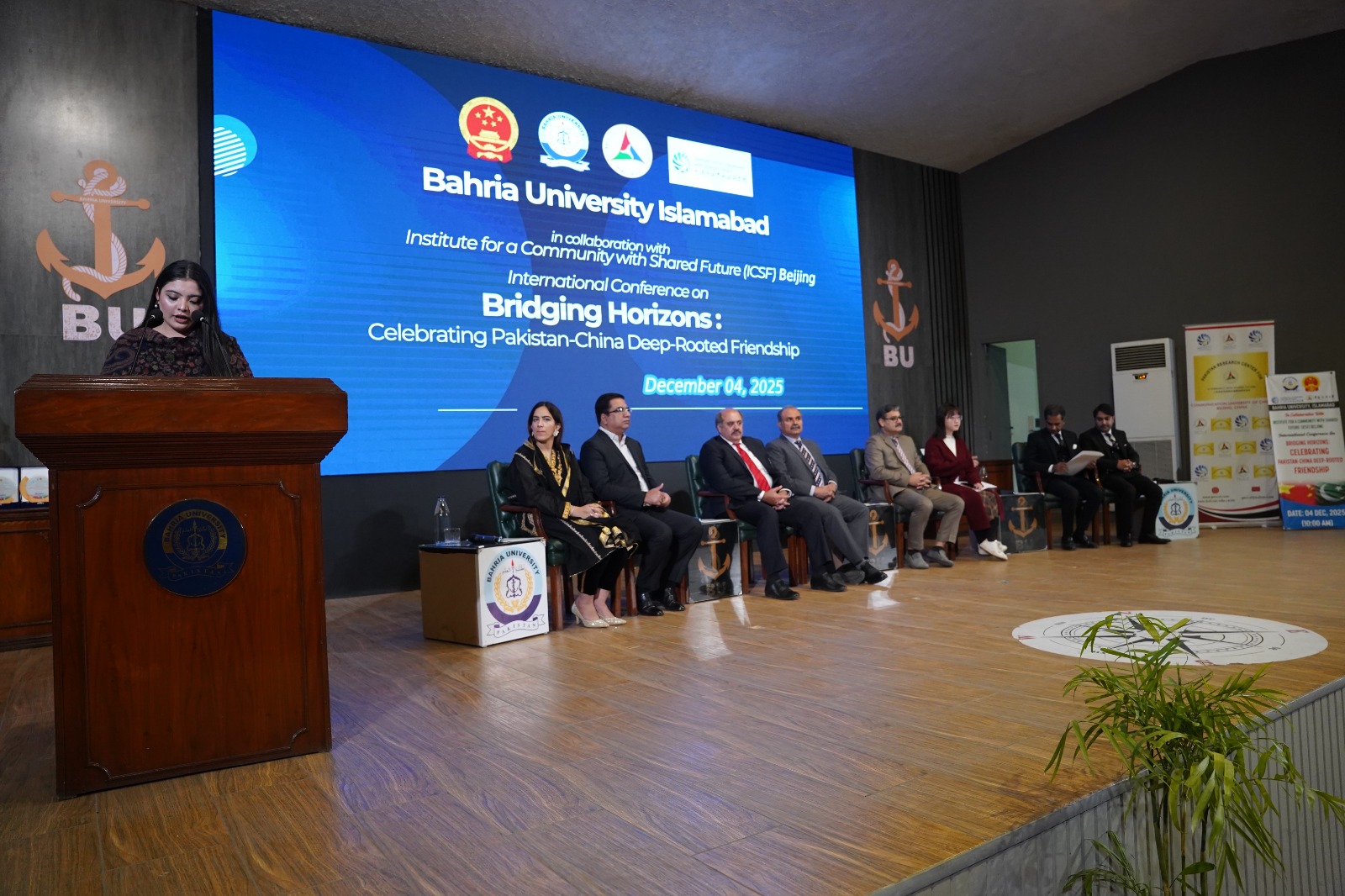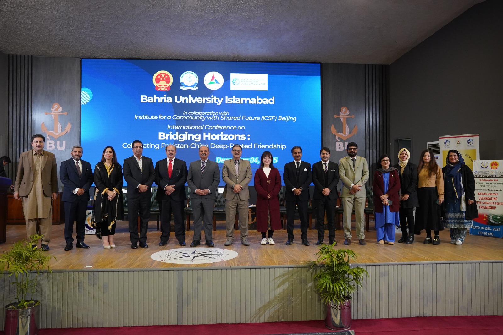 On 4 December, 2025, an international conference on “Bridging Horizons: Celebrating Pakistan-China Deep Rooted Friendship” jointly organized by the Faculty of Humanities and Social Sciences, Bahria University, Islamabad, in collaboration with the Institute for a Community with Shared Future (ICSF), Communication University of China (CUC), Beijing, and the Embassy of the People’s Republic of China to Pakistan, was held at Bahria University, Islamabad.