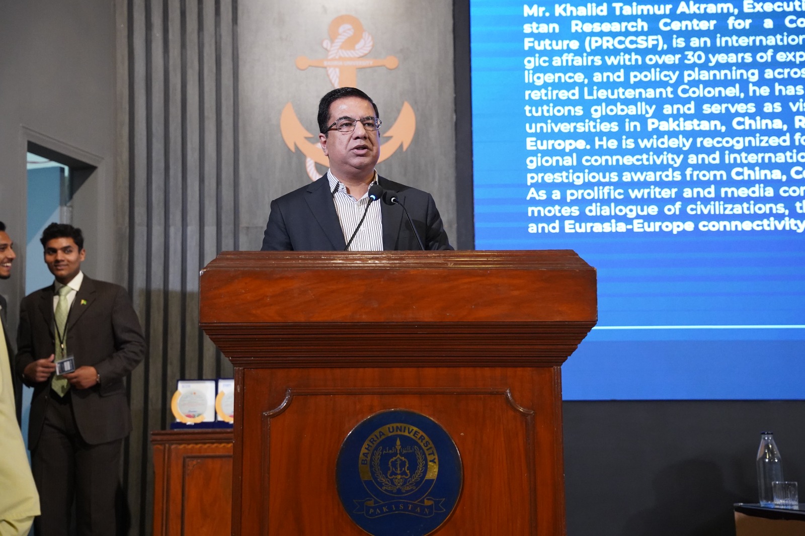 The welcome remarks were delivered by Mr. Khalid Taimur Akram who emphasized the purpose of the conference and its role in celebrating the enduring Pakistan–China partnership. He highlighted the importance of meaningful youth engagement in strengthening bilateral ties and fostering deeper mutual understanding.