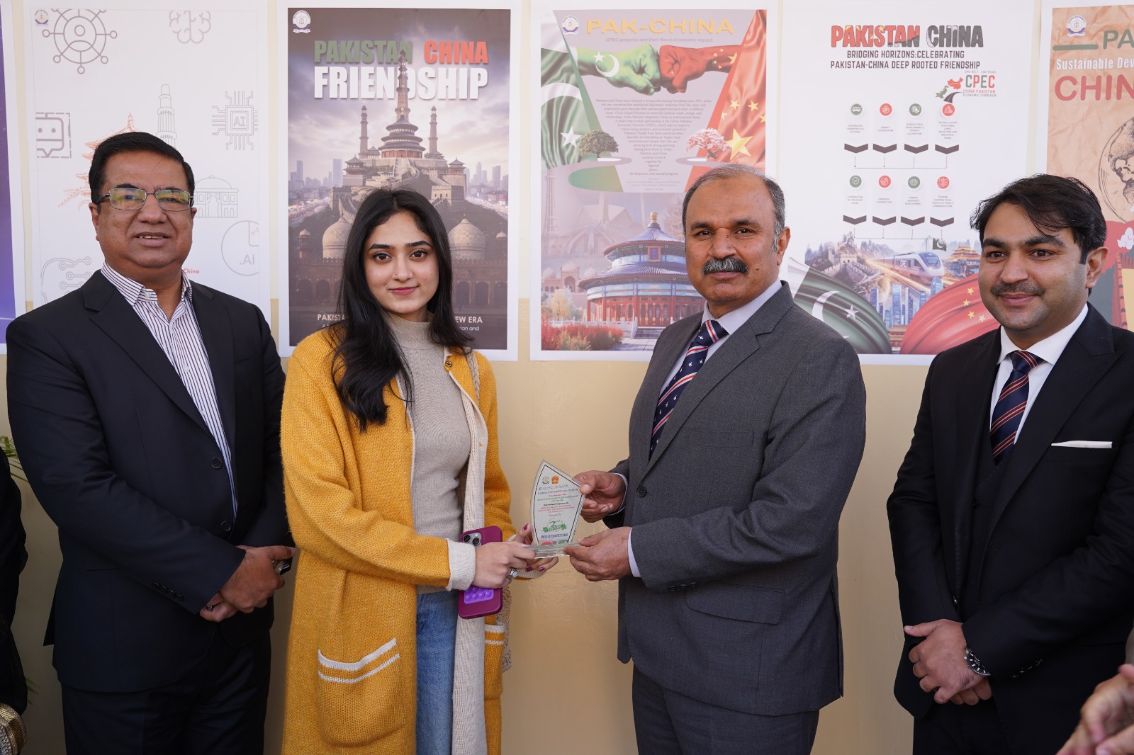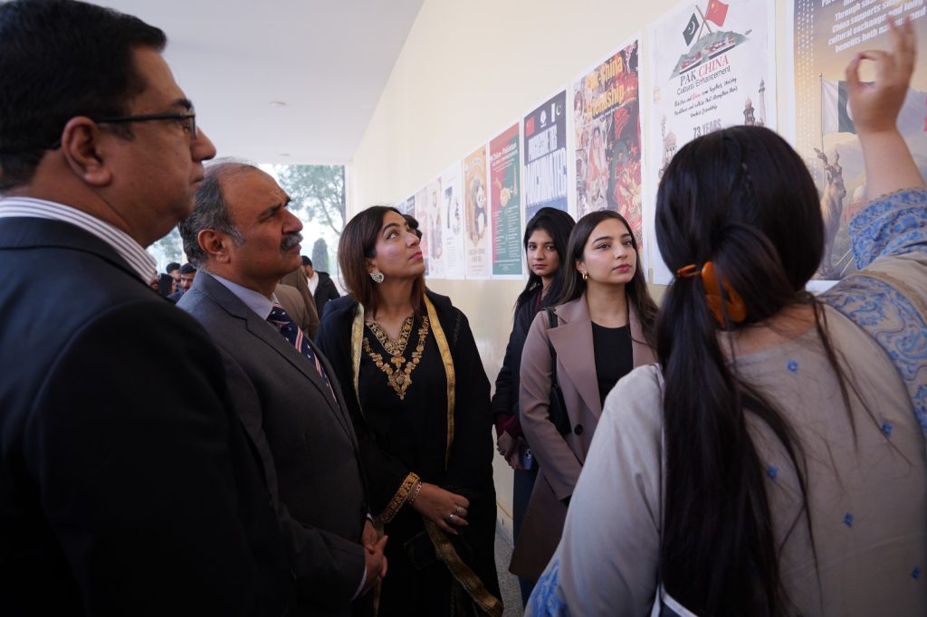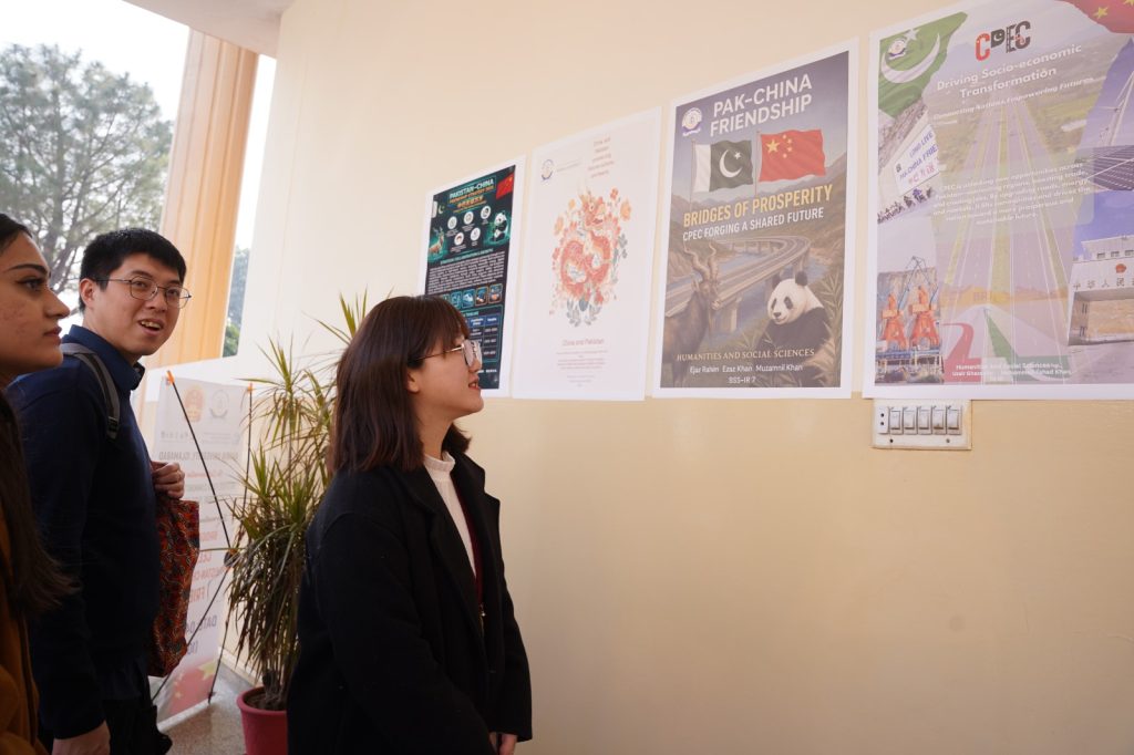 At the end of the inaugural session, the Chief Guest and the Guest of Honour inaugurated the poster competition on the theme “75th Anniversary of Pakistan-China Friendship” in which students displayed their artwork. 40 selected posters were displayed, out of which, 3 finest posters got selected for the prizes. The best posters were awarded shields in recognition of their outstanding contributions. The exhibition provided a vibrant platform for students to visually express their understanding of Pakistan–China relations, attracting appreciation from faculty, guests, and fellow students alike. It highlighted the role of creativity in promoting cultural and diplomatic awareness among the youth.