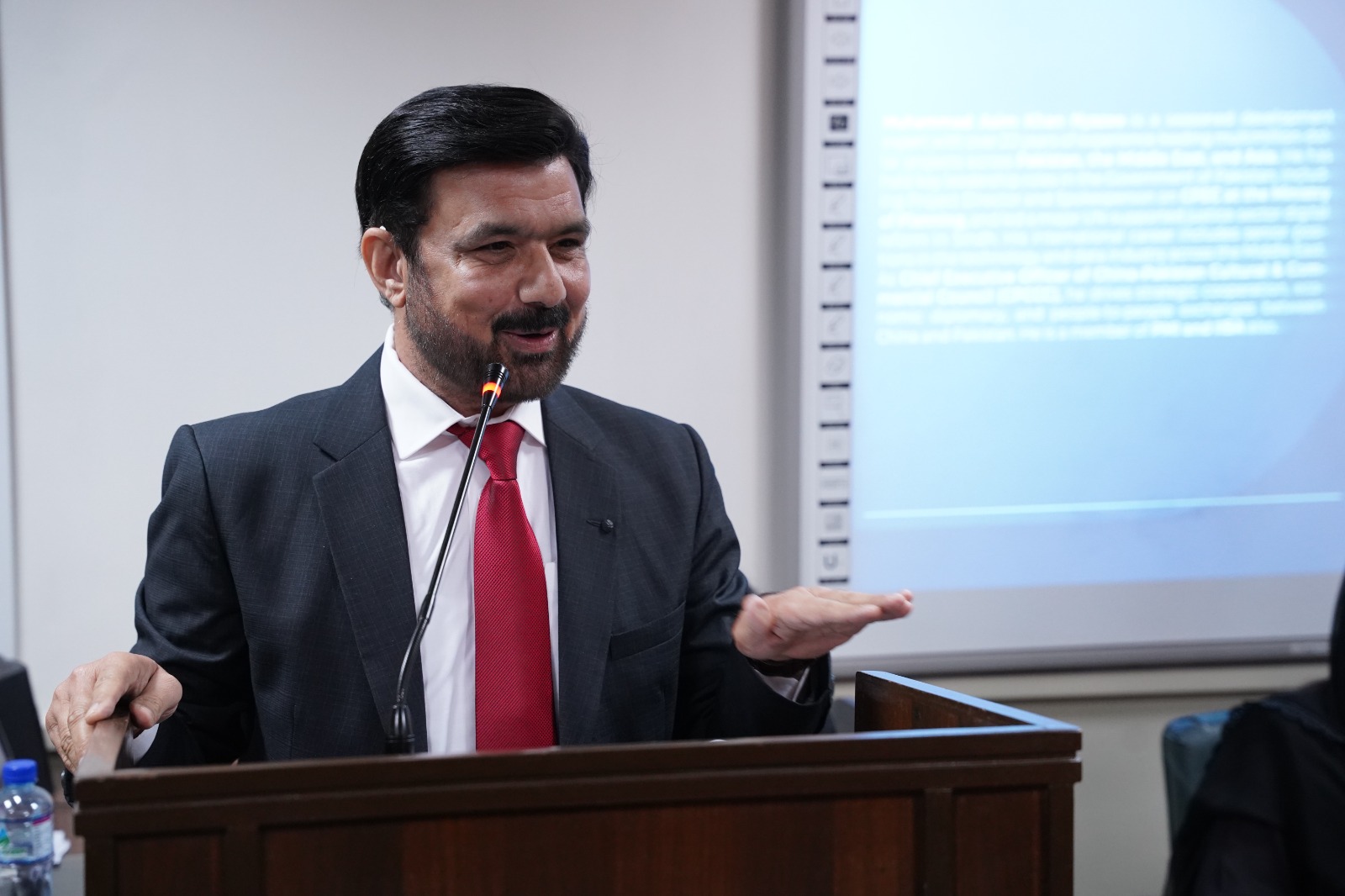 Advocate Adil Aziz Qazi, Advocate Supreme Court of Pakistan and Former Vice Chairman of the Islamabad Bar Council, in his talk “Diplomacy in Action: Understanding the Pakistan–China Strategic Relationship,” highlighted the significance of diplomatic efforts in strengthening bilateral ties. He emphasized the strategic, political, and legal dimensions of the partnership and its impact on regional stability.