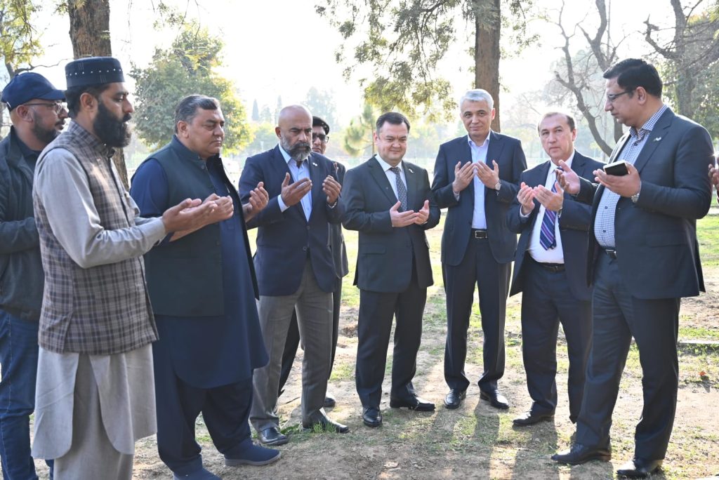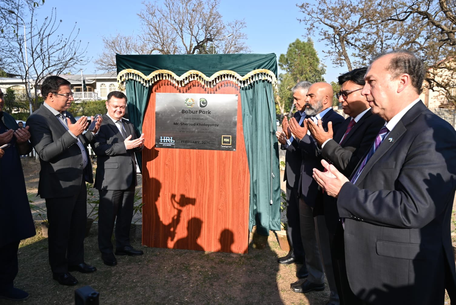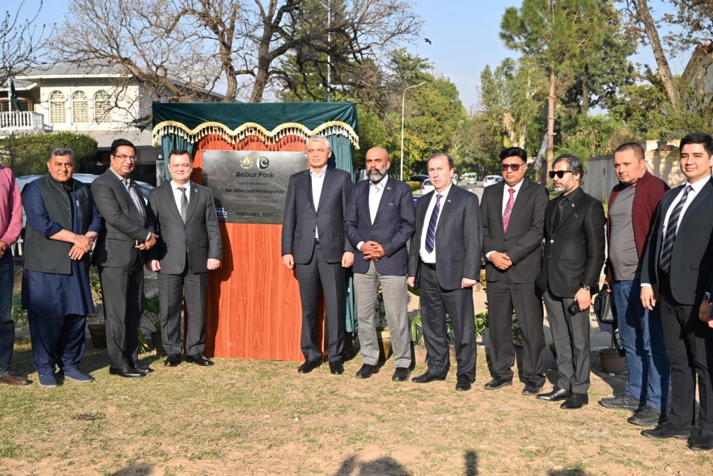 On 16th February 2026, His Excellency Mr. Sherzod S. Khidoyatov, Minister of Construction, Housing and Communal Services of the Republic of Uzbekistan, along with a five-member delegation from the Ministry, visited the site for the Babur Park near Sector F-7, Islamabad, Pakistan. His Excellency Mr. Alisher Tukhtaev, Ambassador of the Republic of Uzbekistan to Pakistan, accompanied the delegation, along with the Deputy Ambassador and other senior diplomats from the Embassy of the Republic of Uzbekistan.