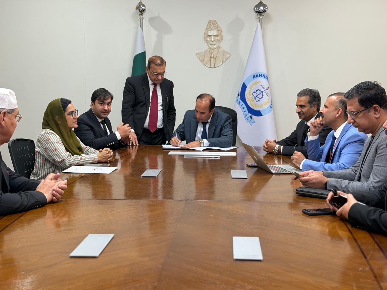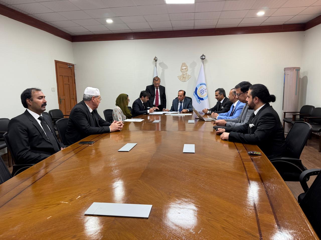 The MoU signing ceremony was attended by distinguished legal experts and academic representatives including Advocate Adil Aziz Qazi, Former Advocate Supreme Court of Pakistan and Vice Chairman Islamabad Bar Council, Mr. Khalid Taimur Akram, Member Advisory Board, International Dispute Resolution Institute (IDI), Barrister Malik Talha A. Rahim, IBC Certified Mediation Lawyer, Mr. Muhammad Yaseen Iqbal, Registrar at International Dispute Resolution Institute (IDI), Dr. Fayaz, Dean of the Law Department, Bahria University Islamabad and Ms. Bushra, Head of the Department of Law at Bahria University Islamabad.