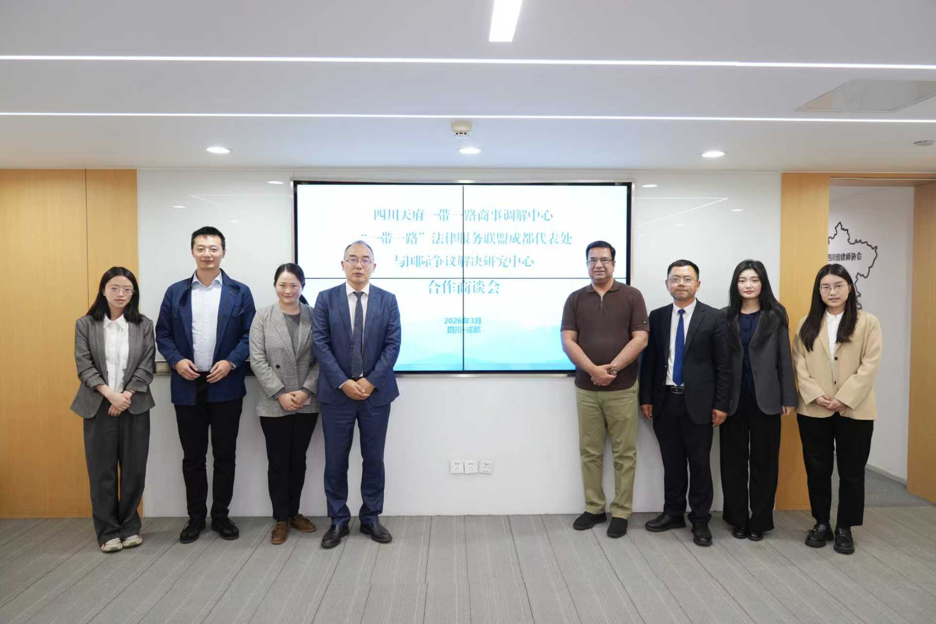 The management of the Sichuan Tianfu Belt and Road Commercial Mediation Center included Mr. Deng Yong, Vice President of the Sichuan Provincial Lawyers Association, Director of the Mediation Center, and Director of the Chengdu Representative Office; Mr. Zhang Jian, Deputy Director of the Working Committee for the Substantive Operation of the Mediation Center; Mr. Wu Fan and Mr. Xu Zixuan, representatives of the Mediation Center; and Ms. Lu Yuanyuan and Ms. Liu Jiani, Deputy Directors of the Chengdu Representative Office.